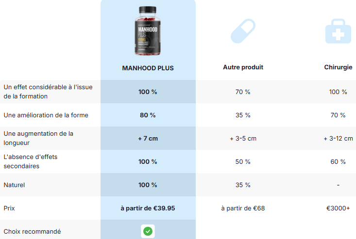 Si vous recherchez plus de vitalité au quotidien, souhaitez prendre soin de votre énergie ou simplement renforcer votre routine de soins personnels, ManhoodPlus peut être une alternative intéressante. Grâce à une utilisation régulière, ses effets peuvent se faire sentir progressivement, en respectant le rythme naturel de votre organisme.